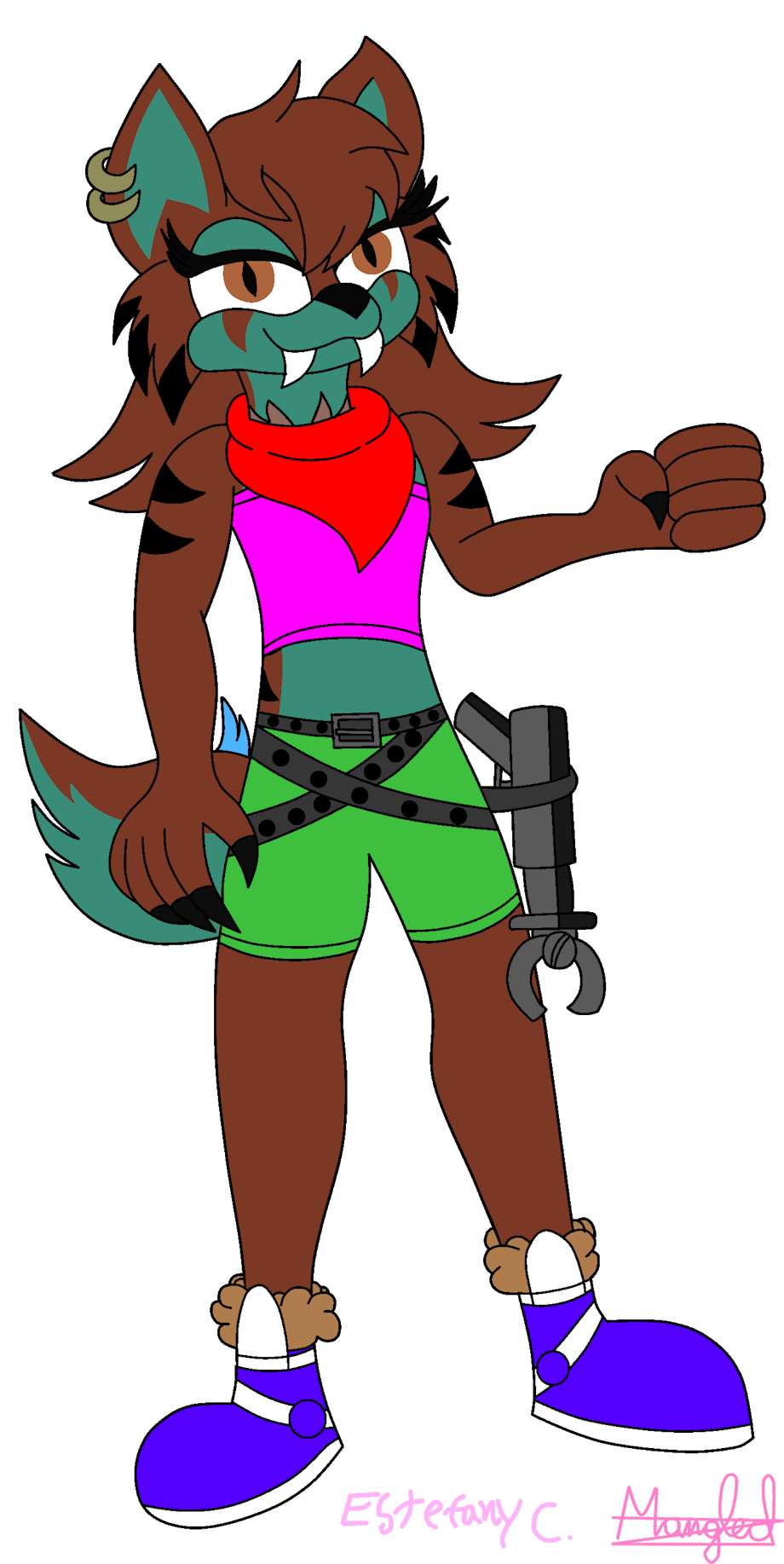 Info: Raymund is an Alicorn which has dual gender and appears in two of the Mangled Universes either in the universe of RougaWolf X Mangled and A-W Mangled, Ray glows in the dark the blue stripes of his tail and his 4 legs and they light up voluntarily similar to the yellow rings that an Umbreon has around his body which light up in the dark or voluntarily. Raymund in both Mangledverses already knows Mangled because he has heard about the wolf (even having seen Mangled on the news). Ray knows Mangled in person because the wolf and the pegasus StarFlight rescued him from a trap of strange vines that kept the alicorn held and paralyzed like a statue, To cut those vines without touching them with his bare hands Mangled had to use his saber sword to kill those vines and free the captive alicorn, what Mangled and Star found strange was that the alicorn had shackles on its 4 legs and a small magic shackle on Ray's horn which turned off its magic powers. Ray commented that he had been captured by a female mage raccoon which was stronger than him and had left him in that state of captivity and paralyzed, in the end both animals take Ray to Mangled Palace where he would be safe.