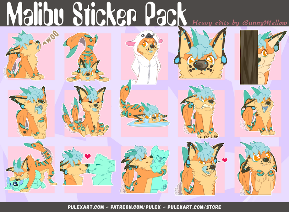 Malibu had heavy edits as he was the monster dog stickers originally I can also print & ship physical copies of the sticker (for personal use only) for +$1/each