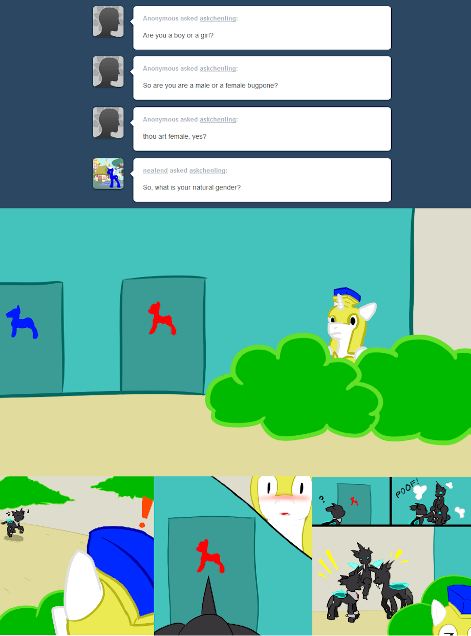 Old ask posts dated from 2012 to 2014 that make up the bulk of a recently acquired changeling's work.