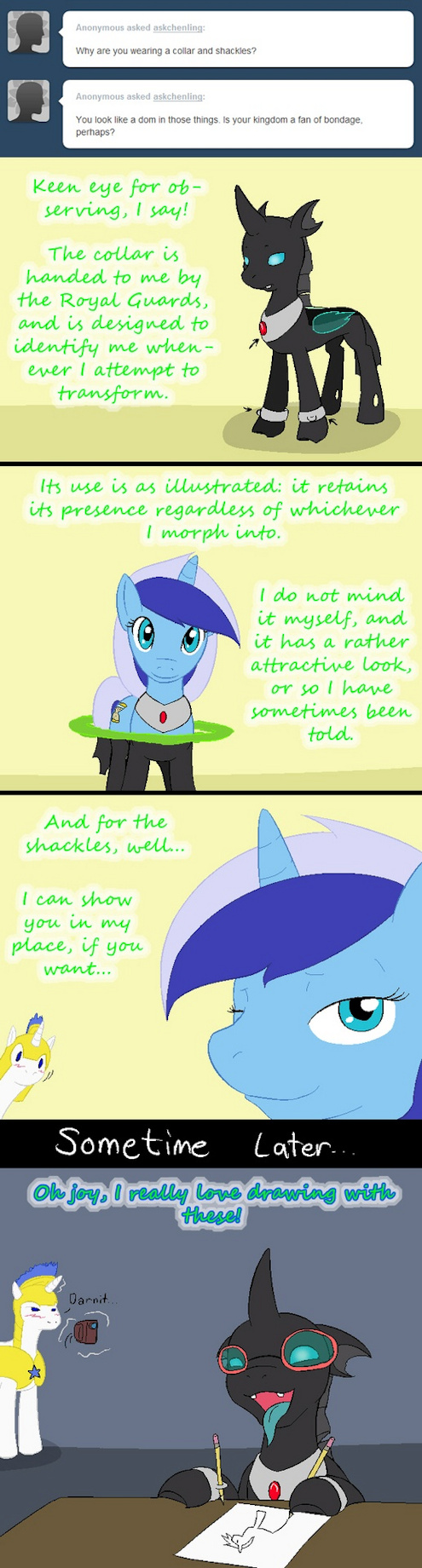 Old ask posts dated from 2012 to 2014 that make up the bulk of a recently acquired changeling's work.