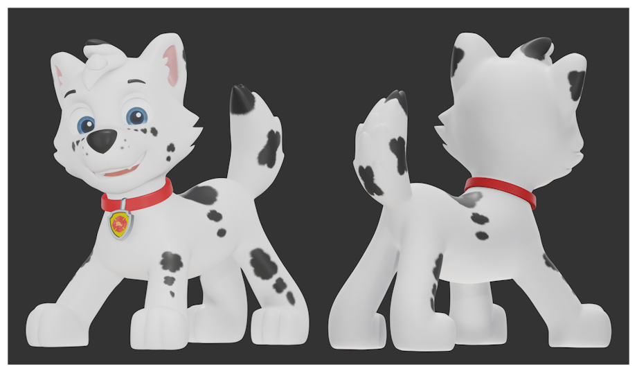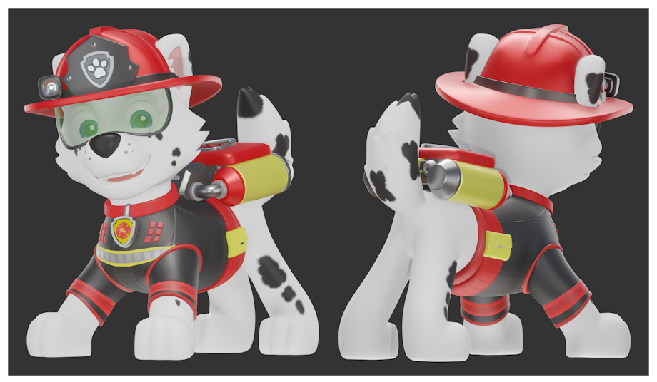 Now with you the 3D model of Spots with his firefighter uniform to the rescue, a smile and a playful and confident attitude, ready to save the day.