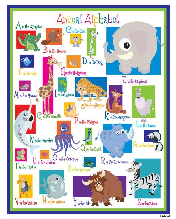 A is for Alligator B is for Beaver C is for Cat D is for Dog E is for Elephant F is for Fish G is for Giraffe H is for Hedgehog I is for Iguana J is for Jaguar K is for Kangaroo L is for Llama M is for Mouse N is for Narwhal O is for Octopus P is for Platypus Q is for Quail R is for Rhinoceros S is for Skunk T is for Turtle U is for Urchin V is for Vulture W is for Walrus X is for Xenopus Y is for Yak Z is for Zebra