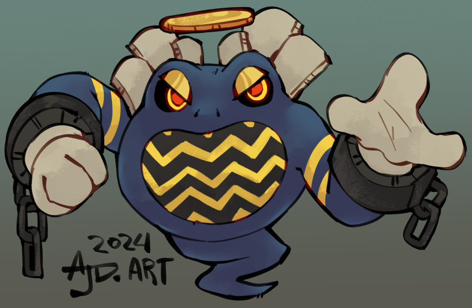 A pokemon trapped in a tomb. Hundreds of years completely undisturbed until some curious humans stumble upon it while digging for fossils. Now awakened, the ghostly poliwrath uses all it's powers to chase away pokemon and people alike from it's cavern tomb.