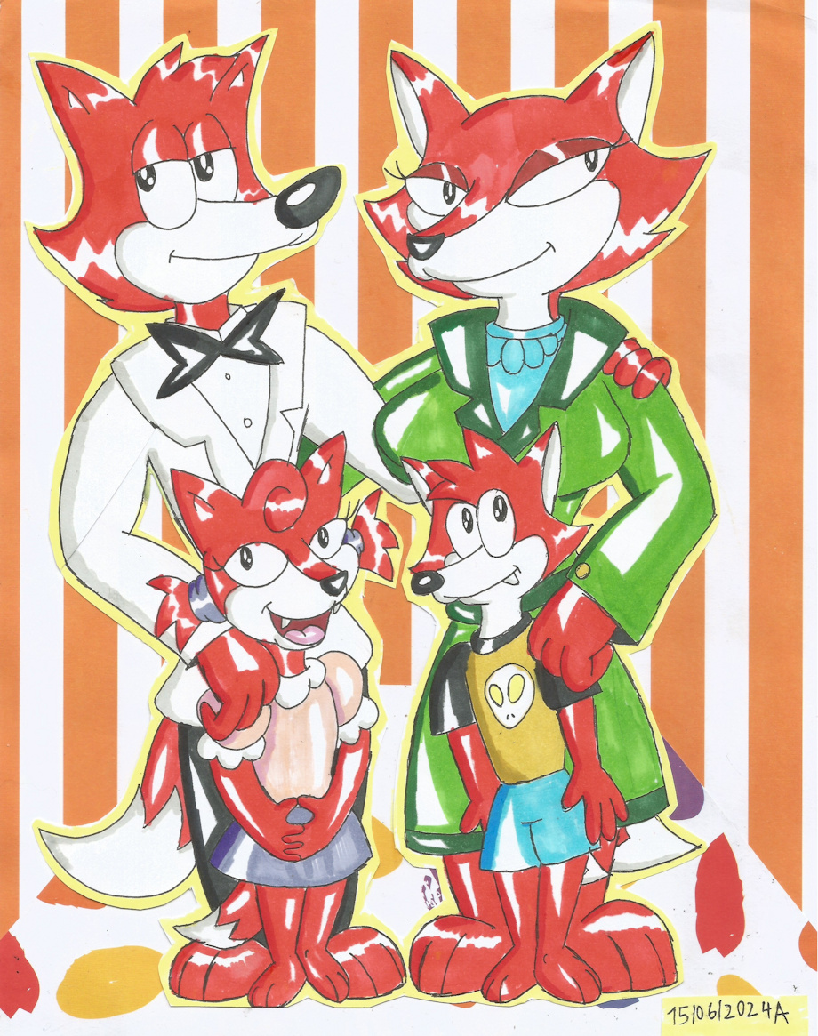 Una sugerencia que me dieron varios años atras de un antiguo arte que hize de Fauna Fox embarazada de Spy Fox de gemelos donde los dibujo con sus hijos ya crecidos. Flora e Spy Fox Junior (pero el prefiere que solo lo llamen J.R) ambos son intrepidos, le gustan los misterios y las aventuras tanto como sus padres y sueñan en que cuando ellos crescan se convertiran en espias o agentes del gobierno de cosas paranormales.