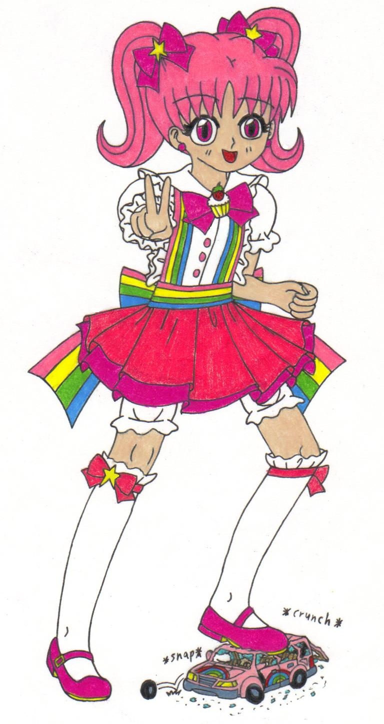 [iconname][/iconname]'s OC, Confectionist Rose, posing while smashing an SUV.