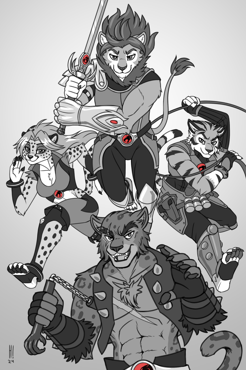 ----- The main four characters from Thundercats (Lion-O, Tygra, Cheetara and Panthro; 2011 versions) as fully anthro felines