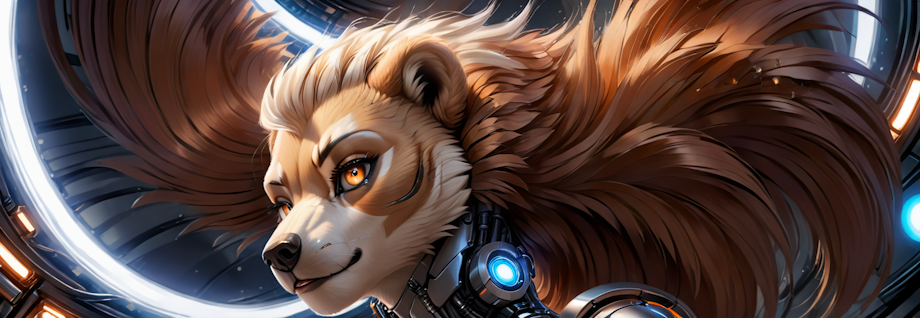 <lora:CircleArtsdxl:1.0>, Circle, Circleart, |<lora:EnvyDynamicPoseXL01:1.0>,<lora:DetailedEyes_V3:1>, <lora:neg4all_bdsqlsz_xl_VC9:1>, <lora:add-detail-xl:1>,perfect lighting,masterpiece,best quality,incredible detail,female anthro sun bear, Furry, Fluffy,, Eighteen, Muscular, Steel gray eyes, Square Chin with Cleft, Square Jaw, Receding Forehead, Oblong face shape, Scars , Light Auburn Space buns hair, Cry ,Suspended above the ground using anti-gravity or jetpacks., <lora:EnvyLongDressXL01:1.0>, long dress,portrait, solo, upper body, looking at viewer, detailed background, detailed face, ( (DarkFantasy:0.8), <lora:EnvyCrystallineXL01:1.0>,crystalline, <lora:EnvyDarkImpressionismXL01:1.0>, theme:1.1), android, cyborg, mechanical limbs, mechanical eyes, cables, advanced technology, head tilted, steel, digital implants, circuits, robotics, techwear, powered by fire, flashing orange lights, bioluminescent parts, force field, wires in background, epic atmosphere,,<lora:Furry Enhancer V2.84:1.0>