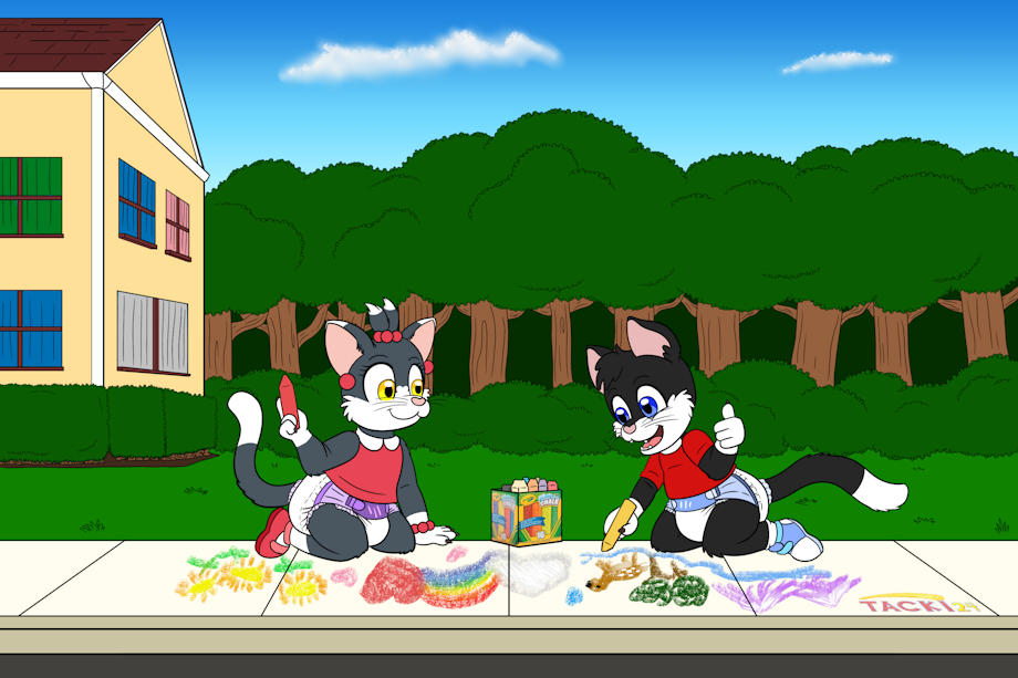 Tiffany & Tuxey drawing & doodling on the sidewalk with chalk