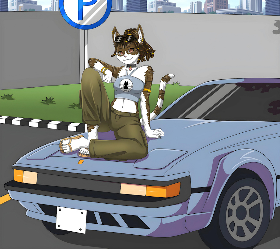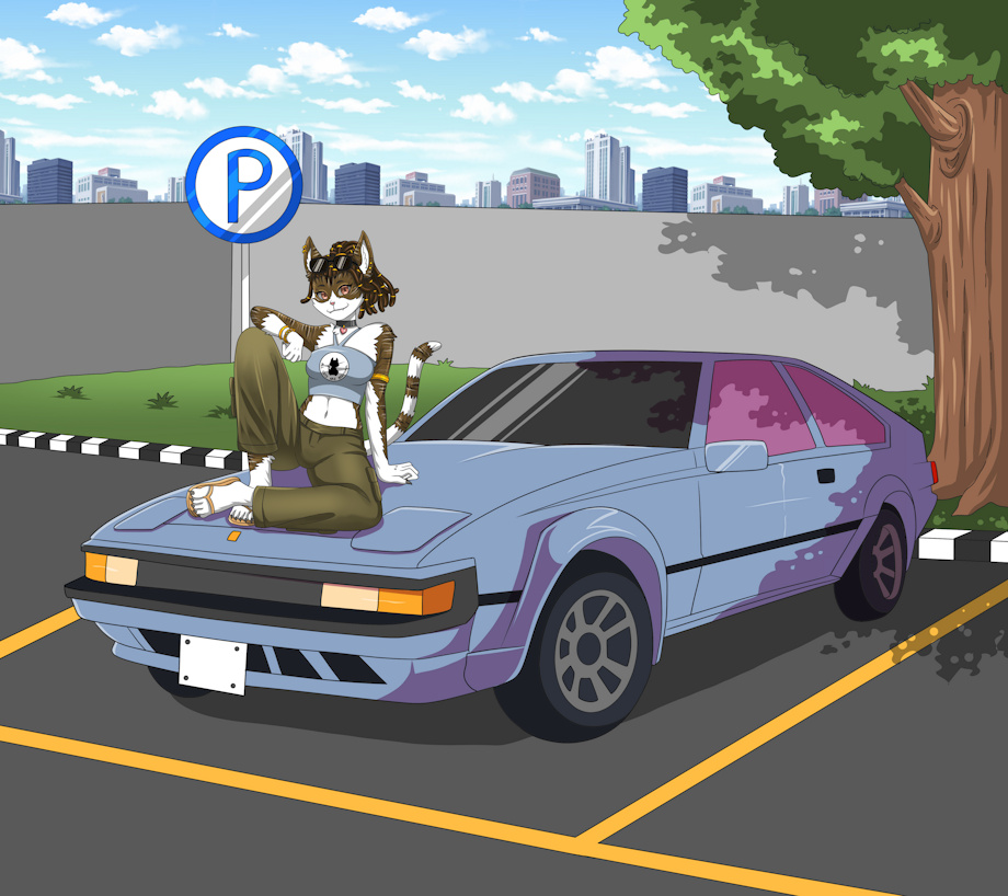 Another drawing of Shrodie posing for a picture. It's the weekend and decide to hang out at a park with her friend.