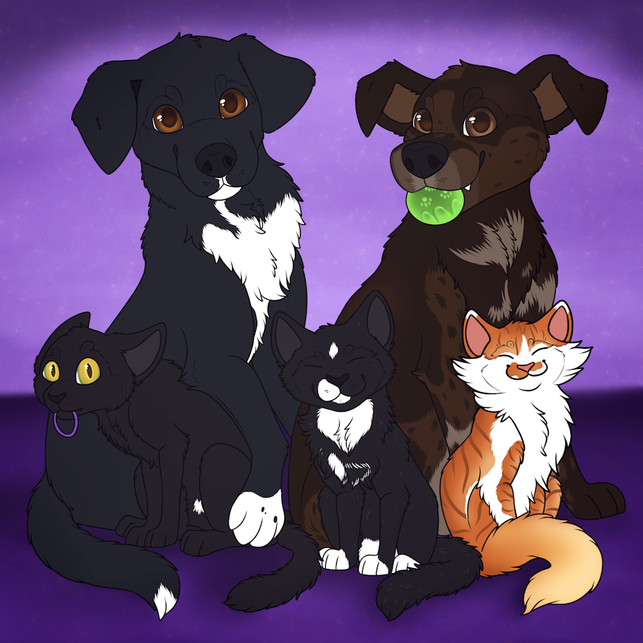 A gift for my brother and his partner of his pets from a couple years ago! I wanted to include all of their furbabies and make sure that they all got a lil love. :3