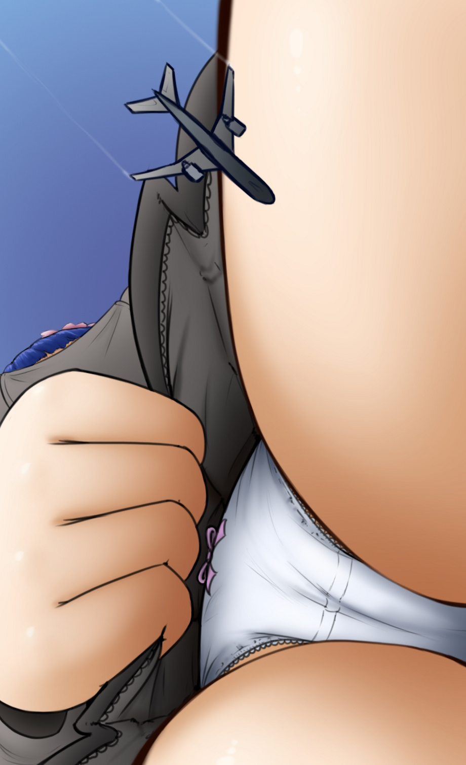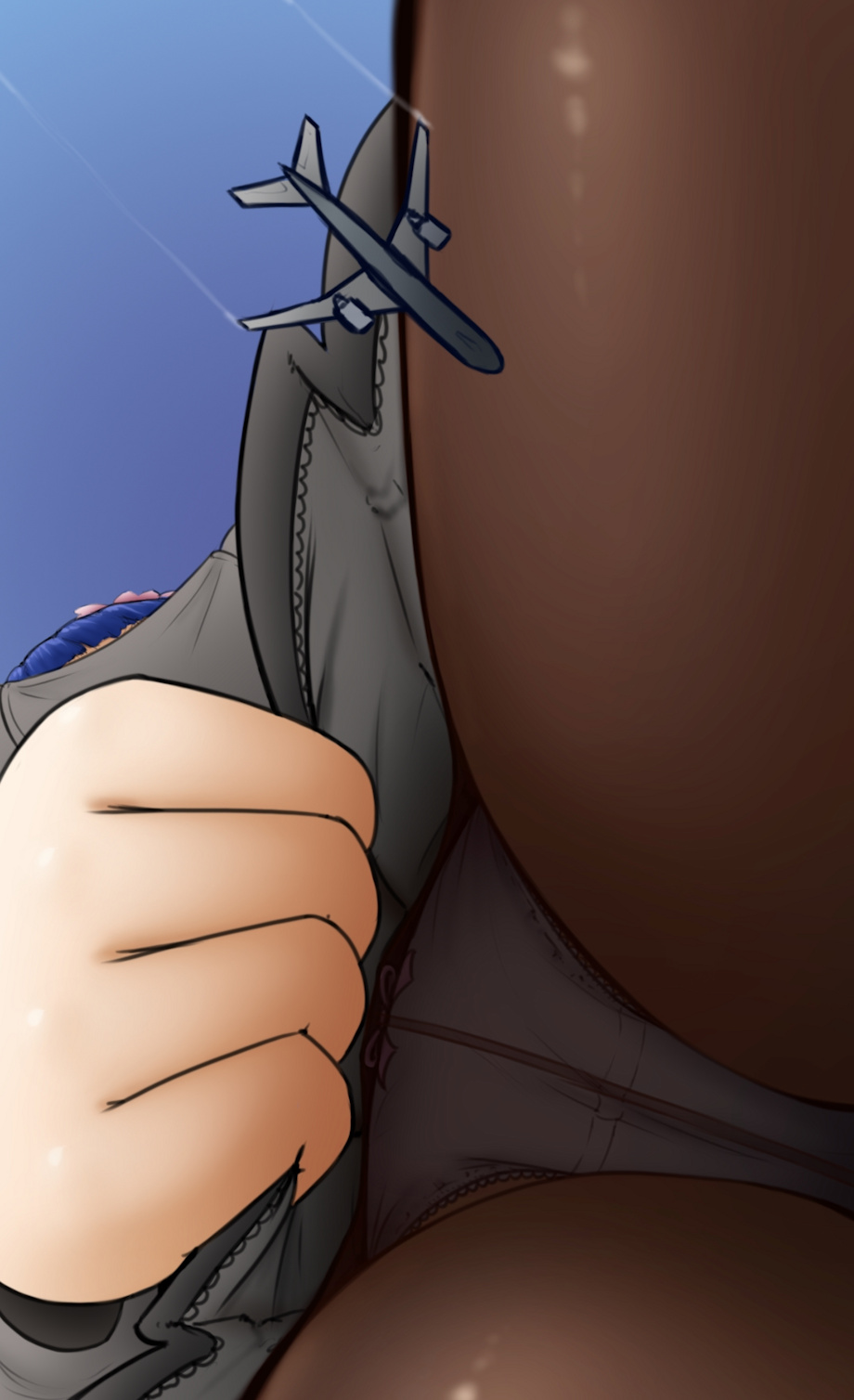 The triple gift train concludes with a bang, with one heck of an extreme Yozakura POV! That plane makes it all too clear just how enormous she truly is, what a view it must be from inside! Great pantsu and legs focus with the composition, her behemothic chest blots out her face entirely, though you can read what her expression must be with her clear concern for her exposed skirt... not that she could possibly hide anything at this scale! The distance effect makes for another showing of her absurd scale, and the pantyhose rendering is wonderful!