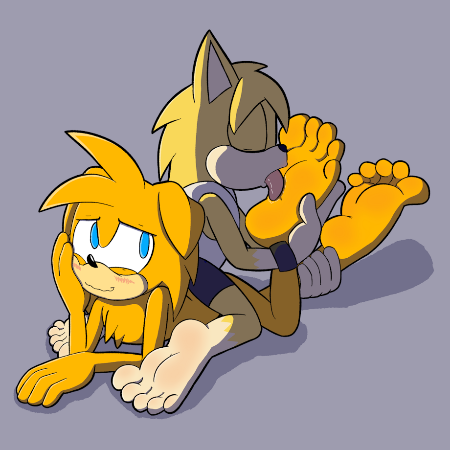His boy Sparky looooves Jamie's feet and just couldn't help himself. He had to have them. It's okay though because even though Jamie looks embarrassed he has a secret thing for feet himself and loves knowing someone loves his feet as much as he does so he's more than happy to let Sparky indulge himself.