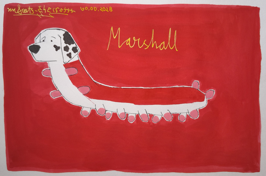 [FR] C'est un autre dessin de Moby. J'ai vraiment aimé peindre l'arrière-plan et ça m'a donné plus d'idées pour plus d'arrière-plans dans l'avenir. J'ai peint ce page entier bleu pour une autre purpose et j'ai pas voulu le perdre donc j'ai dessiné mon personnage préféré ici.