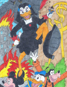 Amelia would pace around in her lair in her pair of black heeled shoes at her personal island situated just outside of Duckberg. She would pace up and around her personal cauldron and spell tome trying to decide her latest scheme to acquire Scrooge Mckduck's Number One Dime.