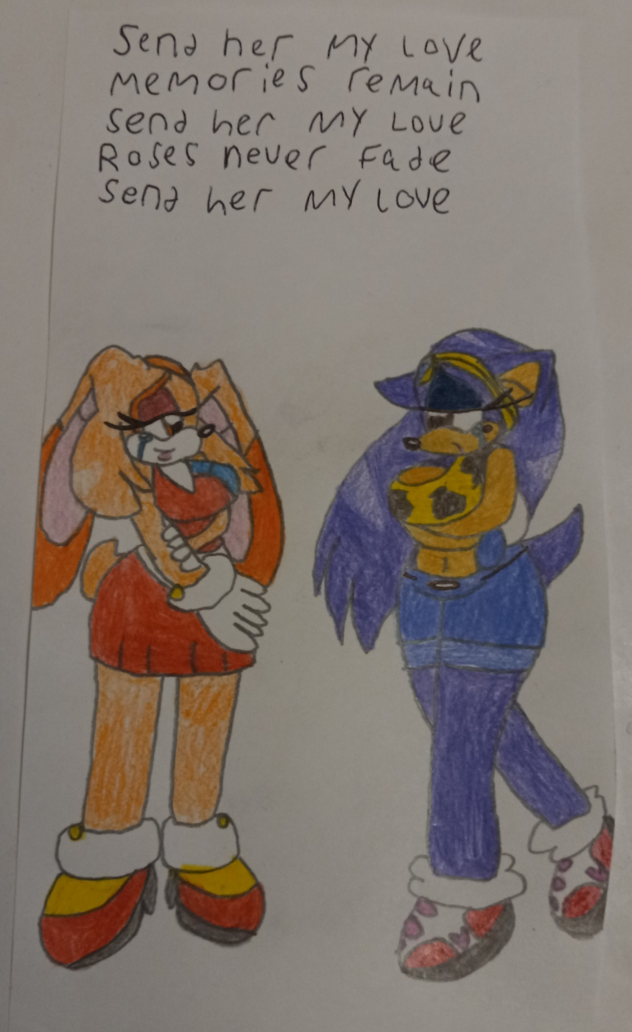 Based on the song "Send Her My Love" by Journey. 21-year-old Cream ran into an old friend, I won't say who. That friend talked with Cream and told her to send their regards to 31-year-old Shannon. And here they are now.