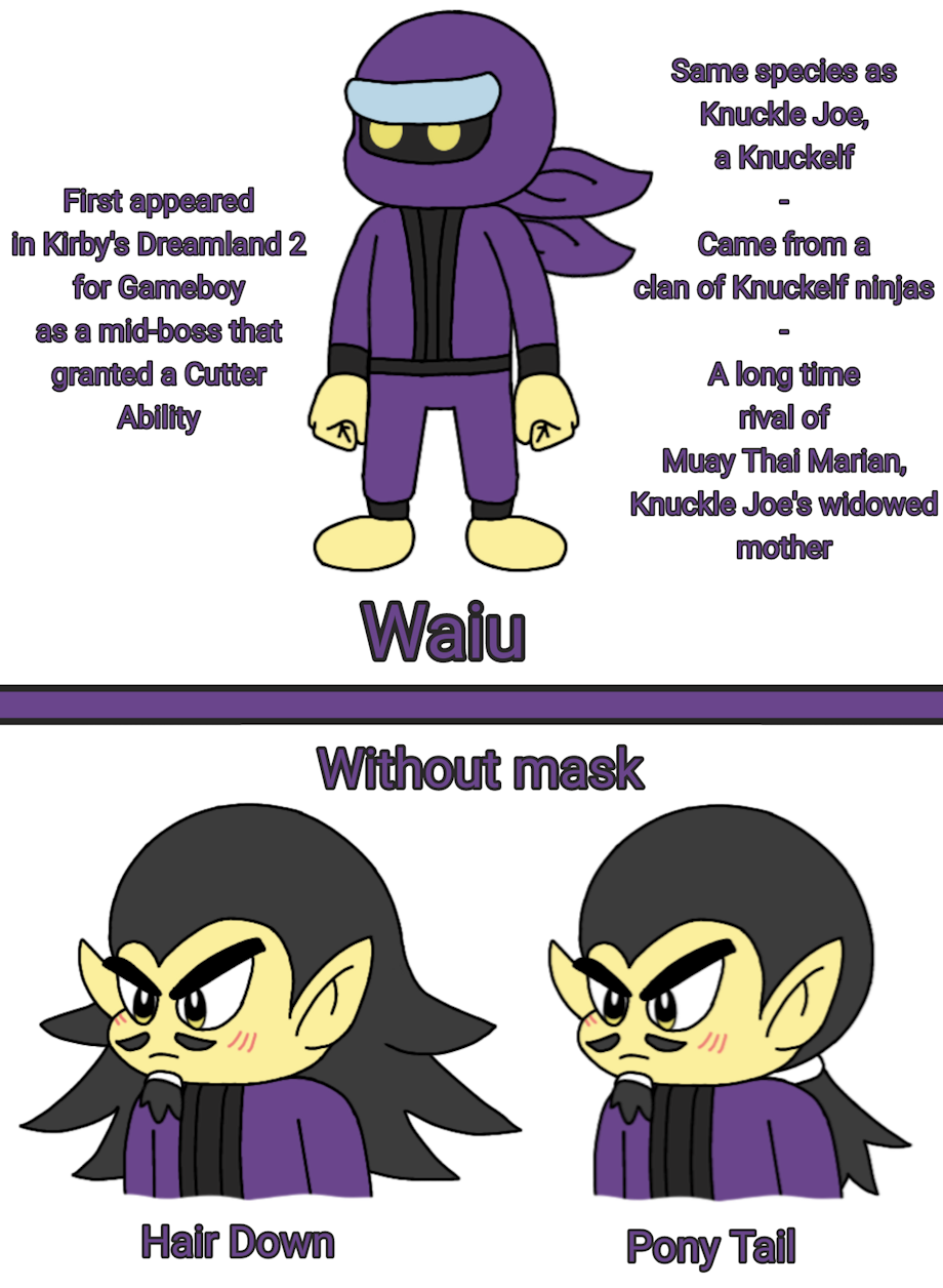 Meet Ryo, Thoma, Maya, and Plume's family, they are Knuckelves just like Knuckle Joe. Ryo's parents live on Ice Island *From Kirby: Squeak Squad*, while Plume's parents live on Sky High *From Milky Way Wishes on Kirby Super Star* === Hans Nobleheart *Ryo, Thoma, and Maya's father* Age: 42 English Voice: Christopher Sabat *Roronoa Zorro from One Piece* https://youtu.be/xHOkYEaWwA4?si=FXy0eiisZZpynu1L&t=102 Japanese Voice: Rikiya Koyama *Shinjuro Rengoku from Demon Slayer* https://youtu.be/ZbtHmoqKSl8?si=z88mJ_rhu1PTyw92&t=582