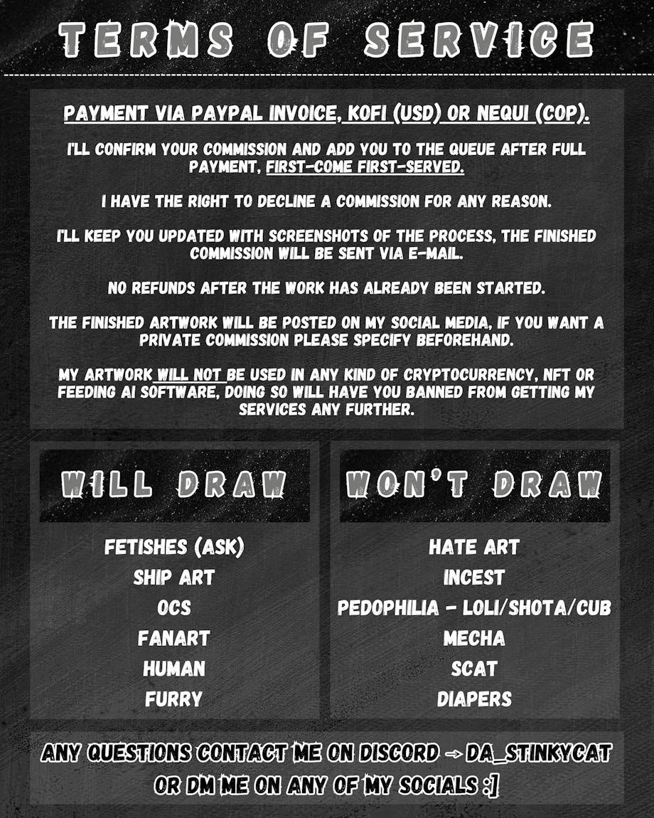 Edit August 2025: Updated my commission sheet once again :,p If you're having trouble reading the slides go to this link -->