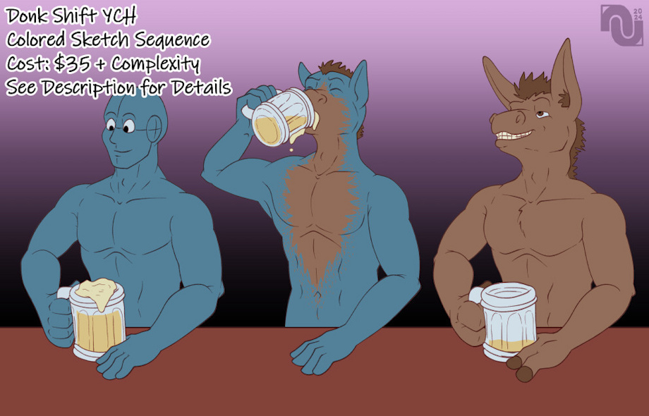 Cost: $35 + Complexity (if applicable) - Any Sex (TG/TF is welcome) - Anthro or Human to start - Can add text - Can add simple clothing Major changes will require additional cost (Please Ask). Examples include: - Changing Body Type - Complex markings or designs - Additional limbs Will be finished as a Colored Sketch commission Payment will be invoiced through Paypal Available until 12:00pm Pacific Standard Time, Saturday, June 29th.