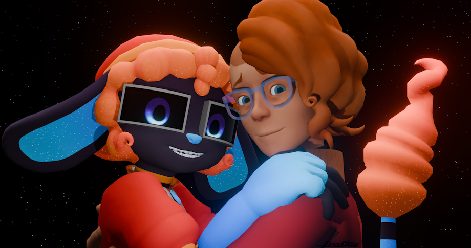 So I managed to make this, a picture of me and Bubbins. This was something I wanted to do for a while, Bubbins is basically another form of me. So I would consider her my, Persona, fursona, Personal character or in Jojo's context my Stand. She started out as my VRChat avatar I had created in Blender. She grew from there. She's been the little light that I've been working on these past 4 excruciating years. She's been loved by those who have seen her and I'm glad, I've met so many wonderful people which has helped a lot with the grief of being backstabbed to oblivion by my now Ex-friends. Also, those people who have helped me are some of the most wonderful people, from my partner of over 12 years and my newfound online friends, and old loyal besties, I've been nothing but blessed with their kindness and love. I'm now working on commissions and slowly building myself up. No more constant reminders of my intelligence or shaming of my emotions. I hope Bubbins and I can reach more people and create more of an impact. Her stand abilities are still in the works, her chant is "Ikui" like "ick oo" and She's very cuddly and friendly. Bubbins as a fursona an unknown or unestablished species with robotic eyes. She's my age so count from (1997) and has a pretty big appetite.