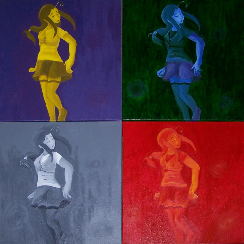 These are four 20x20 painted canvases, each took about four hours to do. They were each to show a different type of colors.
