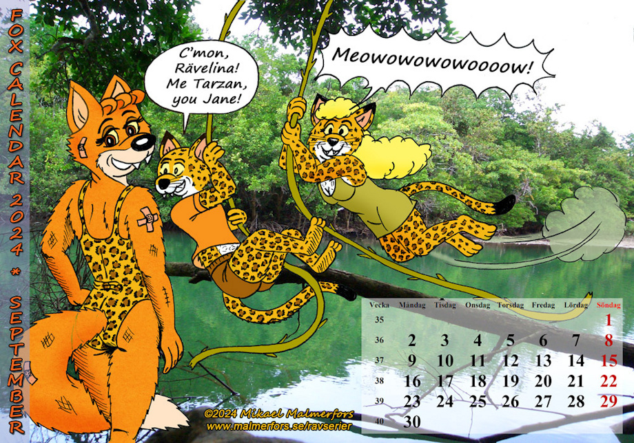 She is RICKELINA, one of RÄVELINA's twin sister MICKELINA's daughters. The other daughter SLUGELINA is standing on the far left wearing a crayfish bib. There is a strong family resemblance The four foxgirls look very much alike and they have often been mistaken for each other