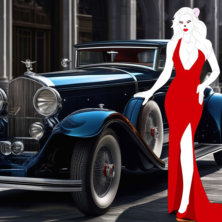 Heeheheheh.. Lovestar has never been so glamour at this point.. With the car here.. There's no telling which person nominated to seduce yet again since her succubi-like tendencies became clear.. But her beauty knows no bounds.. Although as a hamster is one thing but I wonder If she was a dragon version of herself and her breasts were to expand so as her waist.. Since they're inflatable.. There's no telling now but the classic car and her dress reminds me of back in the old days in chicago..