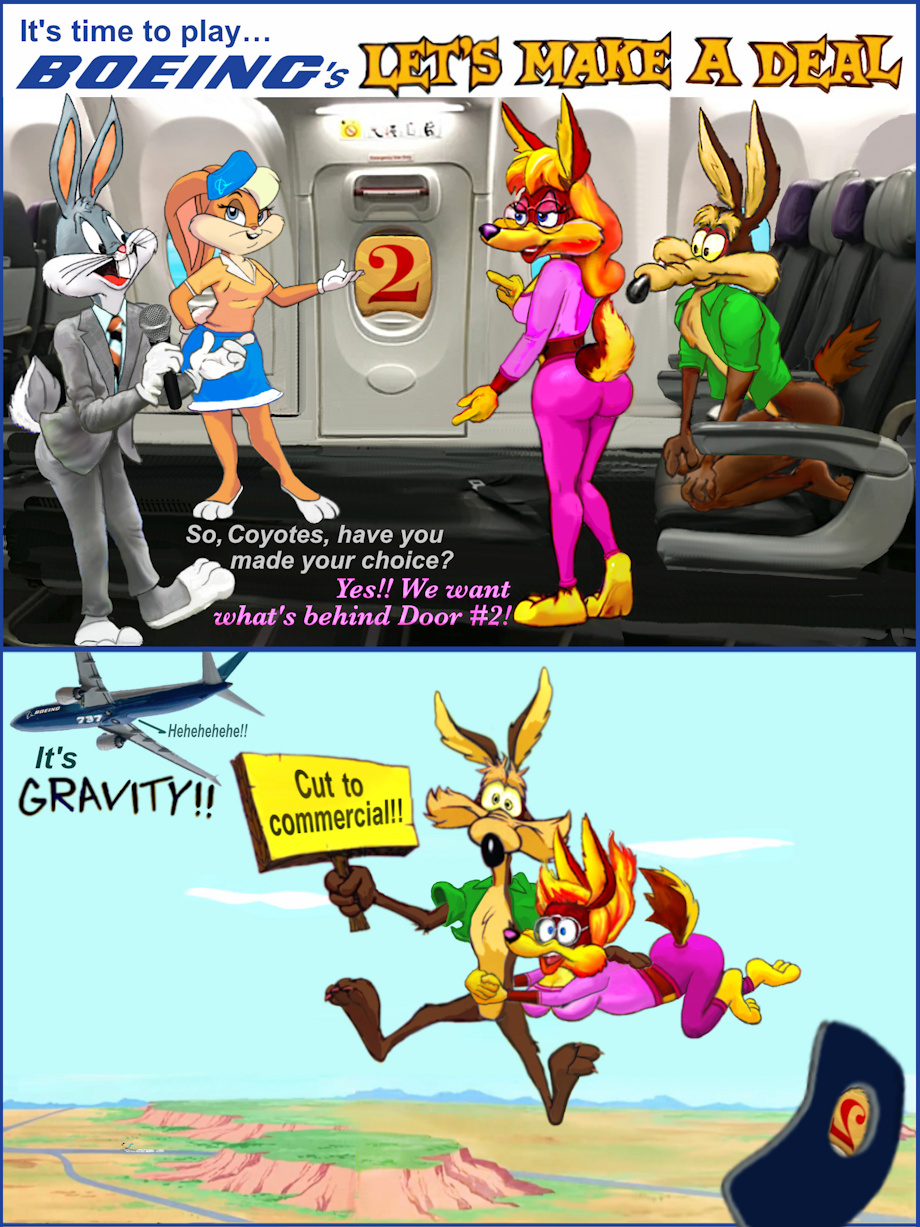 I love this Comment! Thanks so much, MU! When Boeing had its "blowout" event last January, I thought of the doors that were always a part of LMAD and found myself laffin' out loud. And who better than Bugs Bunny to play Monty Hall? It took a long time to get this pic finished, but at last it's done. Thanks for enjoying the intent behind the pic!! ^•^