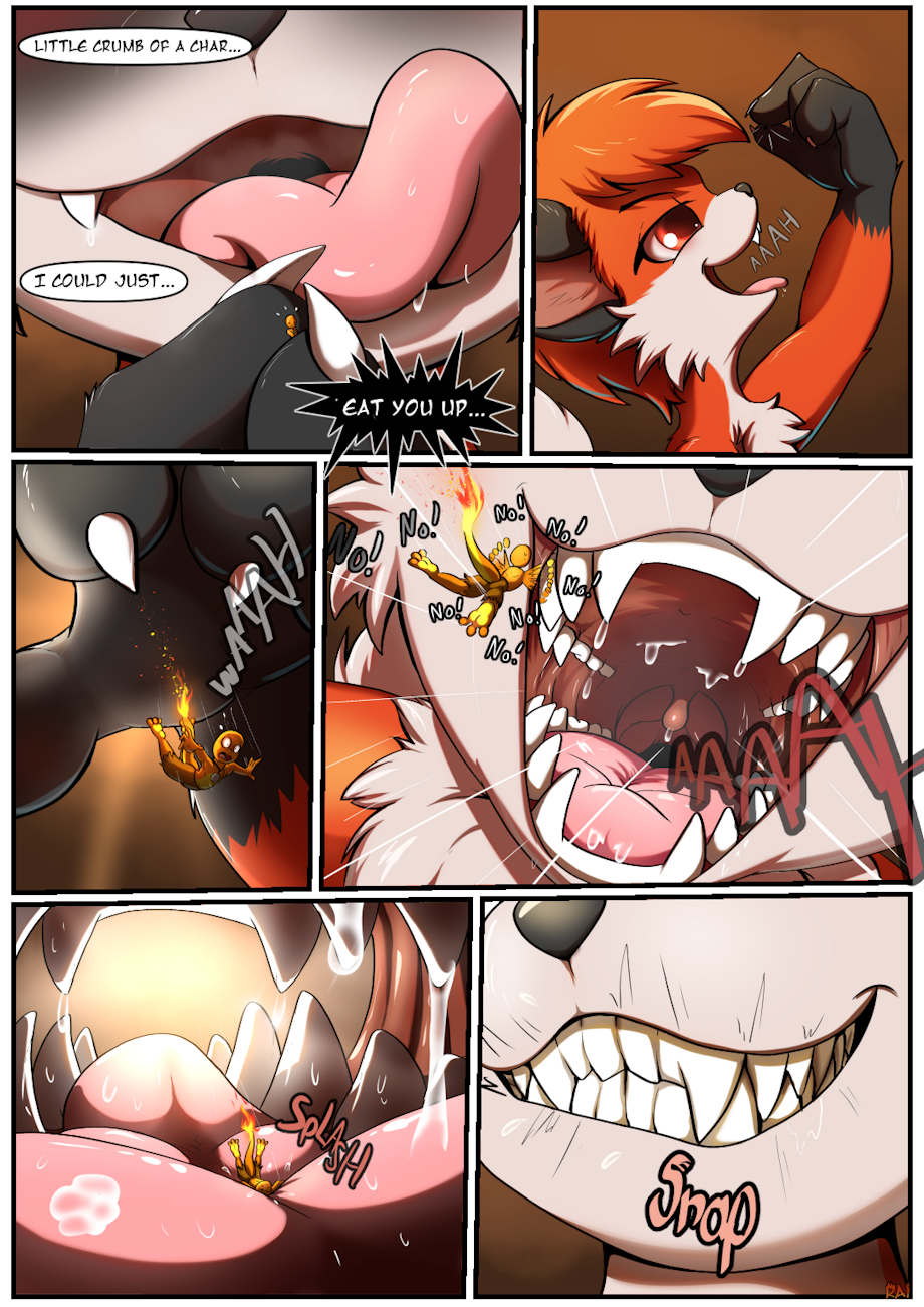 Second page of Pyron's comic. Char going into the fox maw :3c