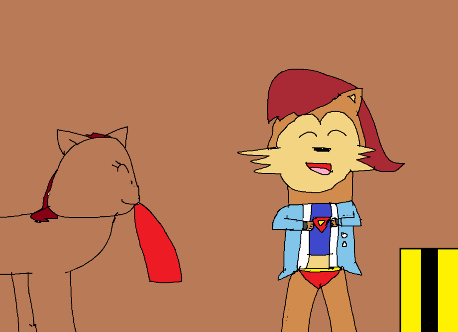 Old artwork of Sally becoming Super Squirrel in a barn, and a horse delivers her cape.