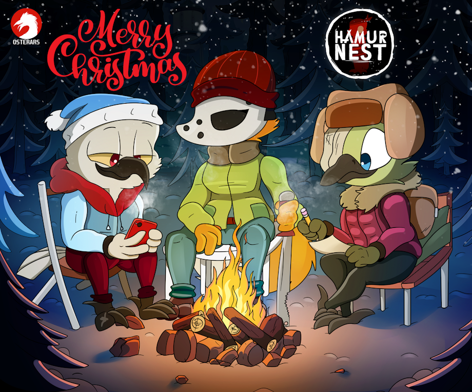 Full of snow, but despite this, a very warm drawing depicting Roosevelt, Matteo and animals sitting in a winter forest around a campfire. I did it last Christmas.