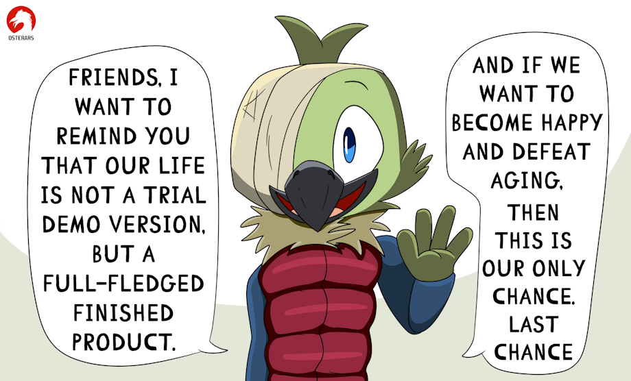 Roosevelt is talking business! Only through hard work together can we defeat aging, which will be the first important step towards immortality.
