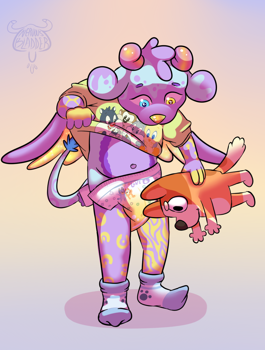 Hehe, he's showing Bingo how much he went pee pee. <3