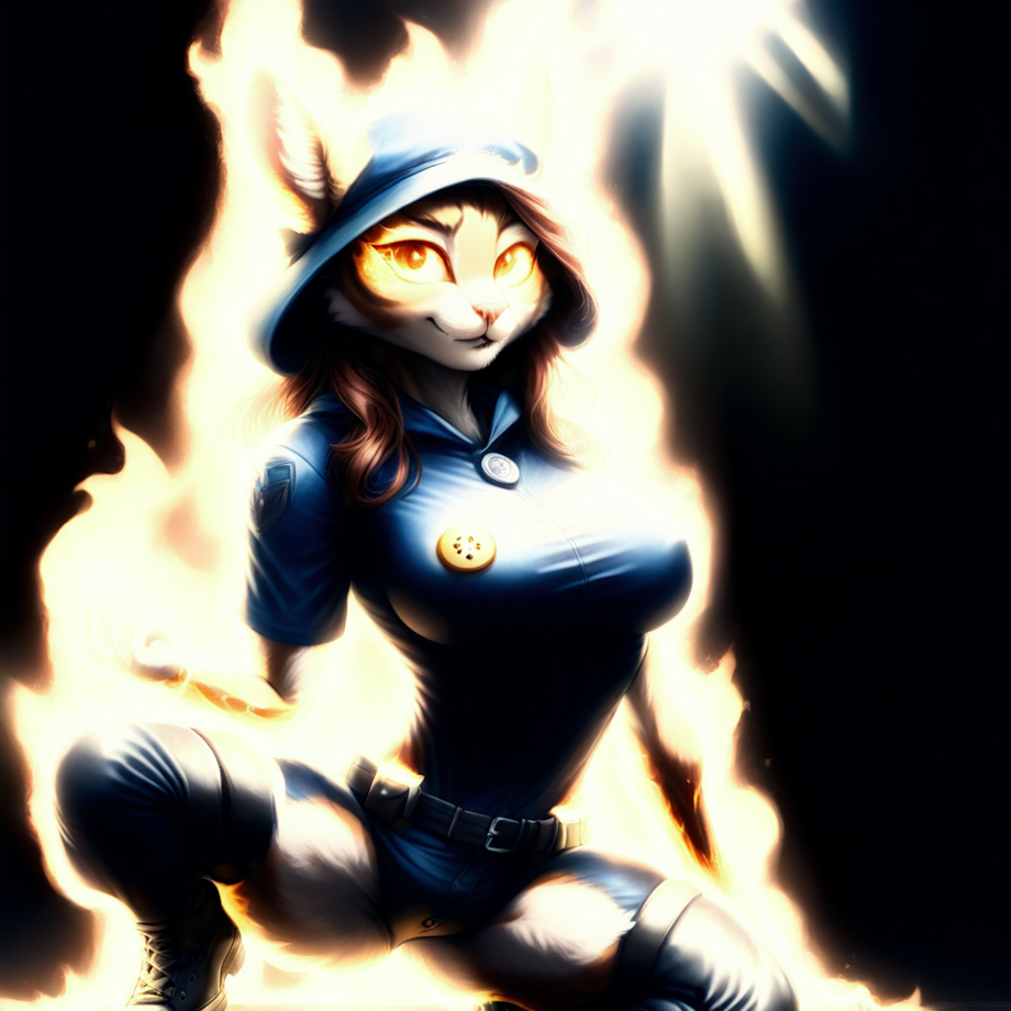 <lora:EnvyDynamicPoseXL01:1.0>,<lora:DetailedEyes_V3:1>, <lora:neg4all_bdsqlsz_xl_VC9:1>, <lora:add-detail-xl:1>,perfect lighting,masterpiece,best quality,incredible detail,male anthro standard chinchilla, Furry, Fluffy, <lora:Rabbit_Hare_CHARACTER_CONCEPT:1.0>,BUNNY[animal], ears, animal ears, small tail, tail, fluff ball tail, small nose, markings, stripes,, Eighteen, Wholesome, Light brown eyes, Oval Ears, Round Nose, Full Cheeks, Oblong face shape, Vintage-inspired makeup , Dark Auburn Long Bob hair, Guilt ,Carbon-fiber Stealth, Character crouches low, arms close to their body, and eyes darting around, mimicking a stealthy, agile stance, police officer wearing Royal blue uniform with a button-down shirt, straight-cut pants, police cap, shiny black shoes,portrait, (bloody scars:0.7), looking down, solo, half shot, detailed background, ( <lora:Flames_SDXL:1.0>, mad-flames, <lora:EnvyVividXL01:1.0>, dark fantasy|x-men|superman|green lantern|scarlet witch|doctor strange|wonder woman|batman|iron man|spiderman|captain america|flash|light greensuperhero|fire} theme:1.1), stoic expression, crusader, praying, floating rocks, light brown rusted leather armor, hood, divine ray of light, bright clouds, illuminated by divine beam, reflections, burning village, peaceful atmosphere, ,<lora:Furry Enhancer V2.84:1.0>