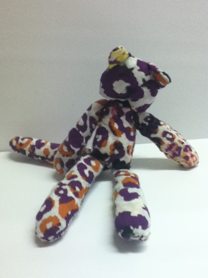 a sculpture i made of my fursona (front view) its made of polymer clay and was the first thing i made of it