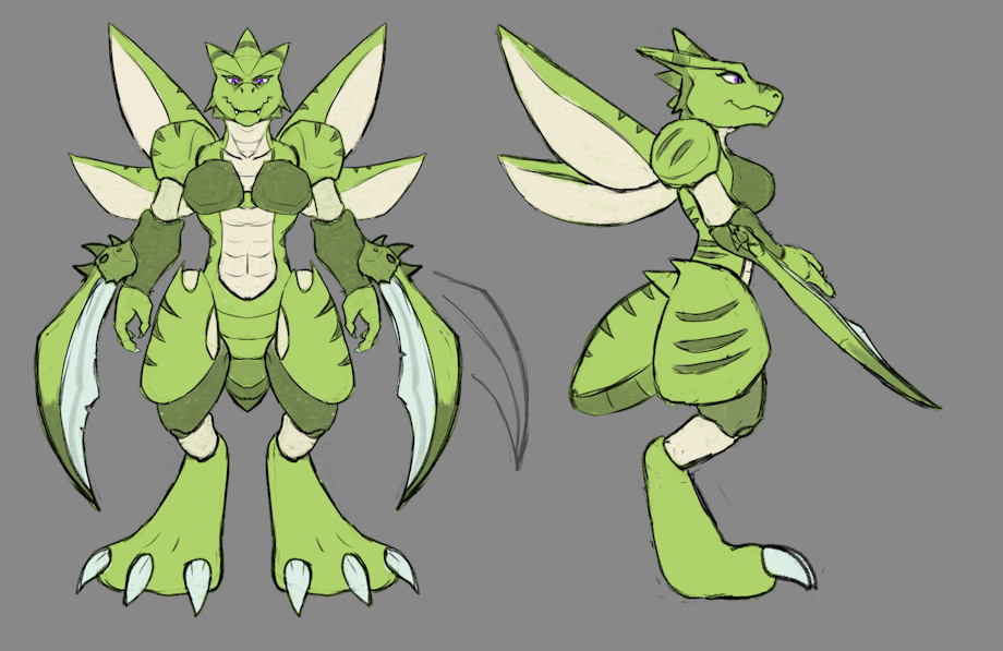 Thought about making a Scyther design for an anthro, and Aermadia was inspired with some back and forth with a friend.