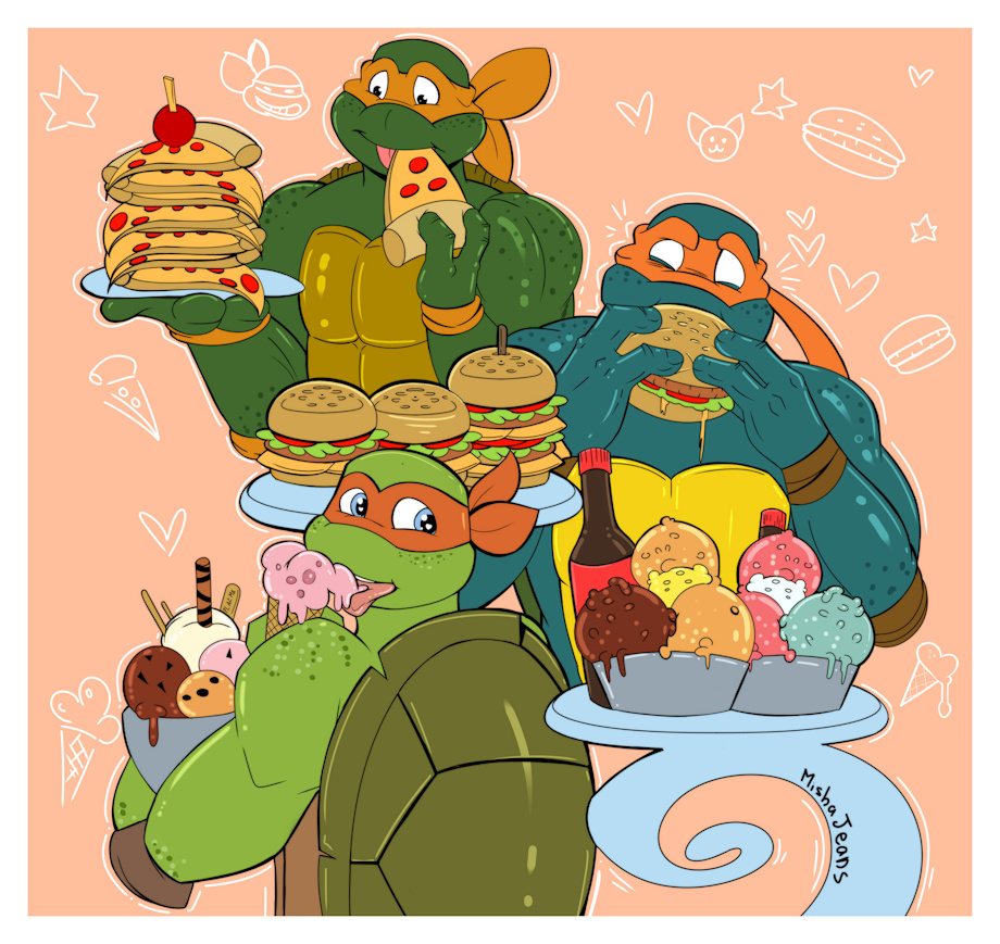 The most hedonistic turtle snacking 🍕🍔🍨🥤