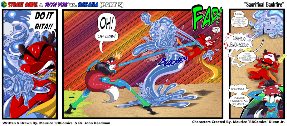 Stuart and Rita continue their battle against Oceana, At one point Stuart has an idea! Inspired by a scene from a manga, he used the most devastating move in sports entertainment: "A FULL NELSON!"