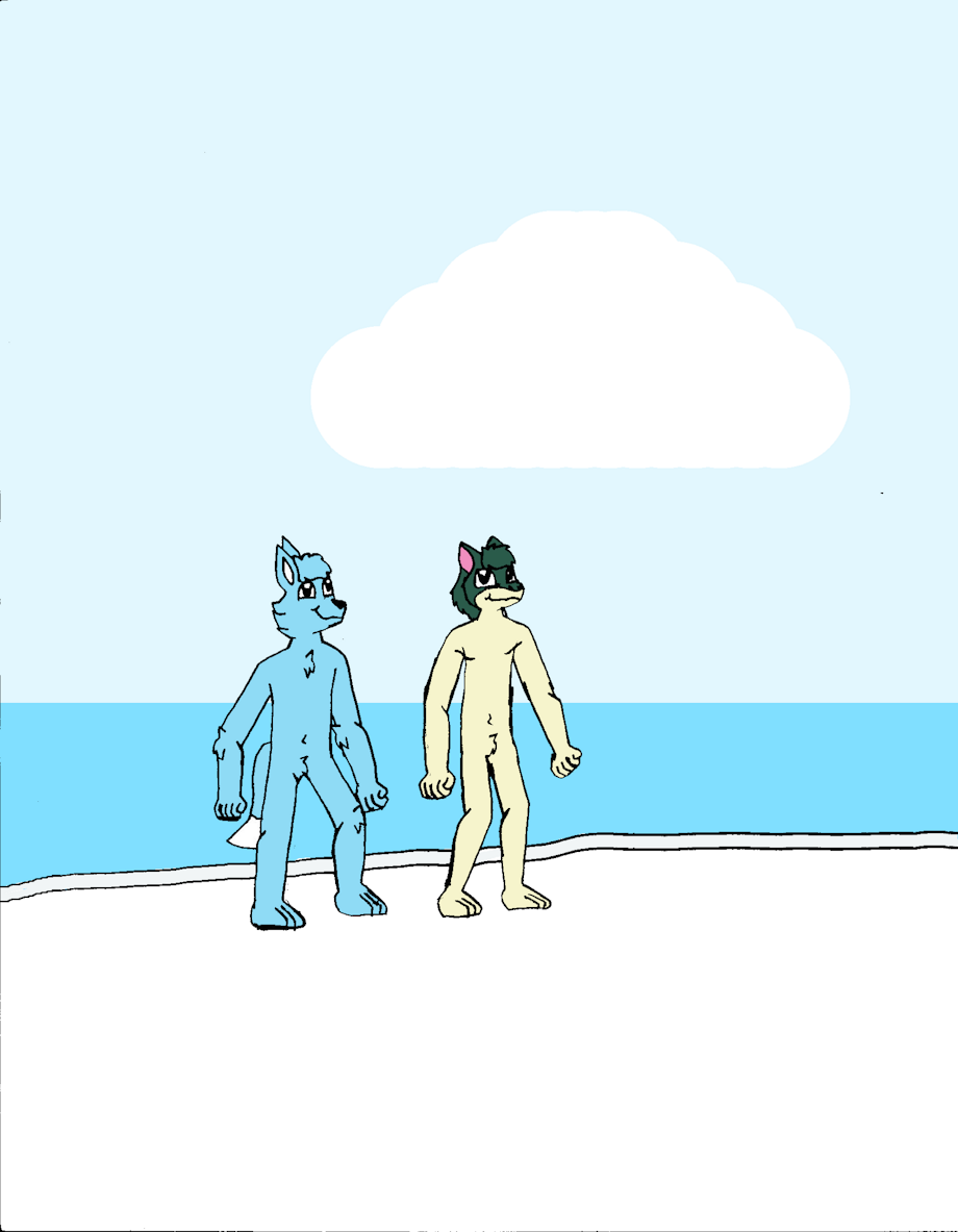 Terry and Edvin are enjoying a stroll at a nude beach.