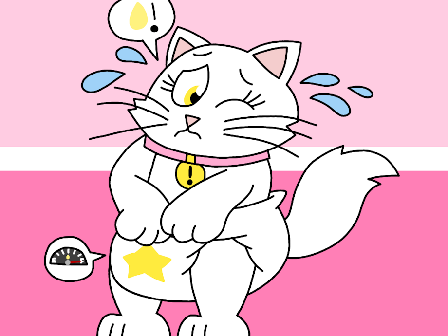 Sparkles wants to pee very badly, so she holds her bladder so she doesn't wet herself.