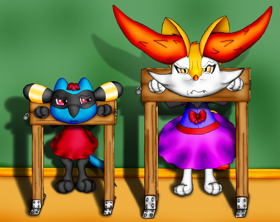 A Commission Make By UnownAce, featuring His Riolu OC, "Rebecca Ruth" and His Braixen OC, "Renee Vanilla" having found themselves in a bit of a predicament.