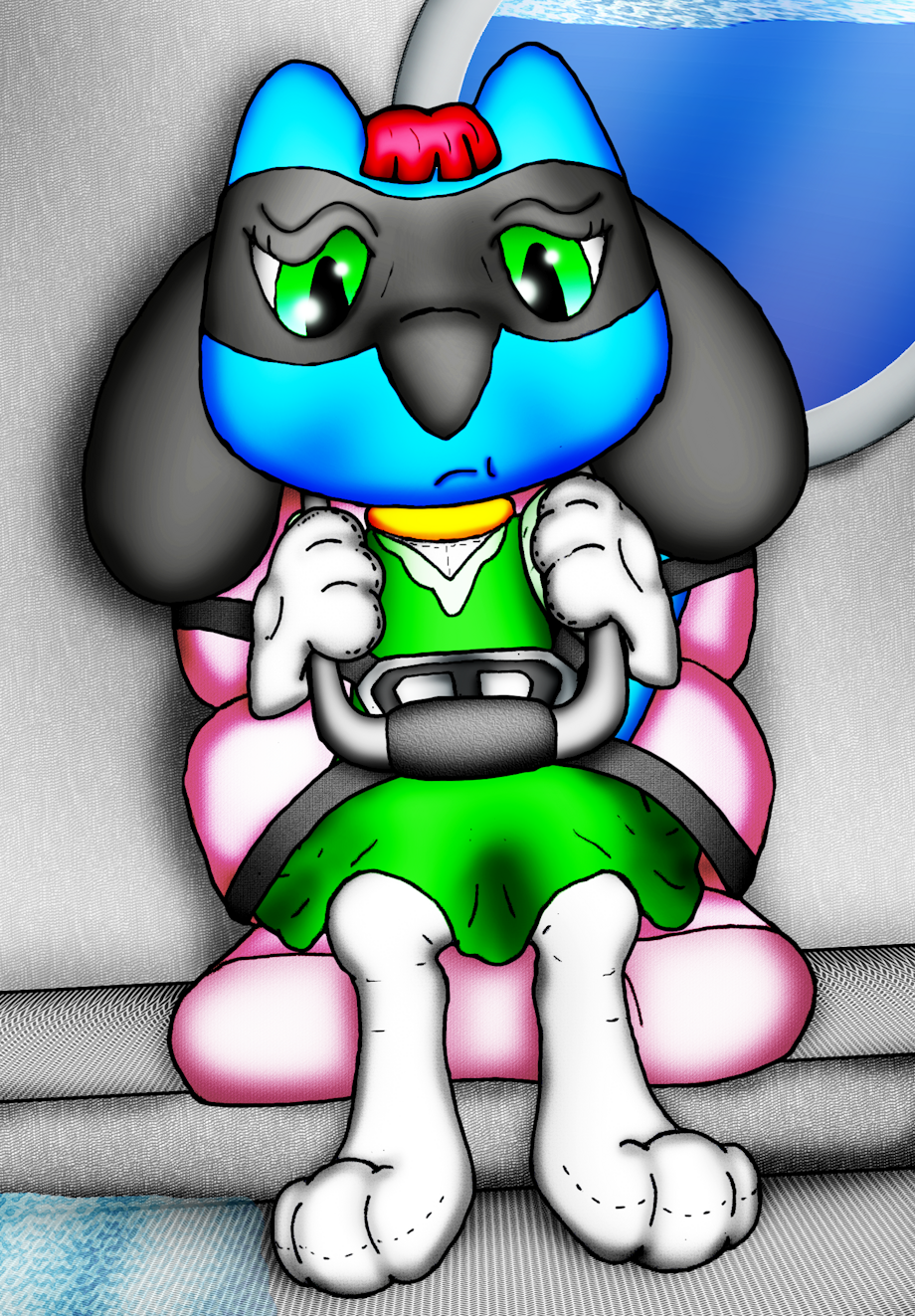 Normally this wouldn't be a problem save for the fact that in the rush and with communications disrupted, rescue crews might not arrive or even locate her pod for several hours, even days...and more dire...there appears to be a hole somewhere in that re-entry capsule as it's slowly sinking and filling with water. To top it all off, the safety=harness and over-the-shoulder handlebar meant to keep her safe is jammed in the locked-position, pinning her to her seat as cold salty seawater pools around her not-rated-for-swimming tights. Her only hope now is to reach out with her Aura and hope somebody close-by who is also Aura-sensitive is listening.