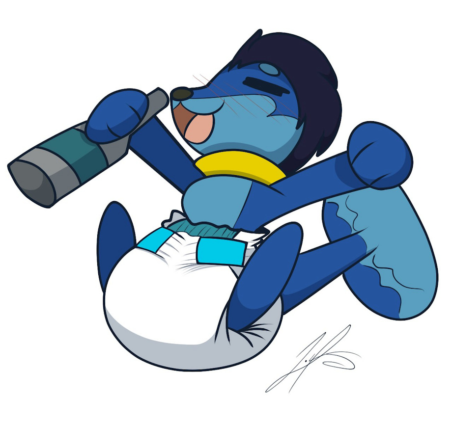 This buizel, will get drunk surprisingly easily. Before long, he has stripped down out of his clothes and is making a scene. Once stripped down, one will find he is packing big pampers under his shorts. Getting himself drunk off his padded butt as he starts to embarrass himself and anyone associated with him.