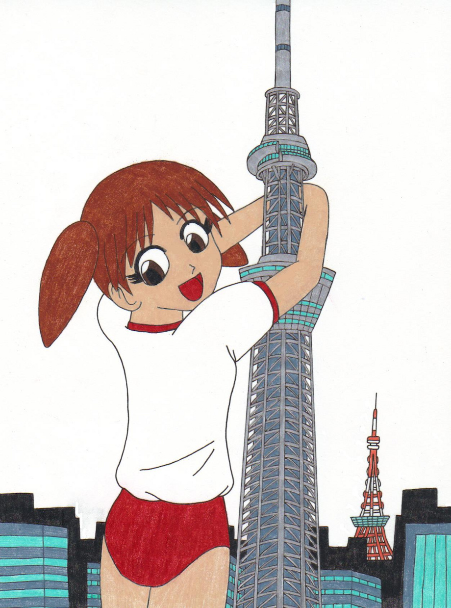 This was a partner piece to the last upload, with another of Tokyo's iconic huge towers being interacted with. Though considering how much taller Sky Tree is vs the Tokyo Tower, Chiyo here is much taller than Starburst was. At least she hasn't pulled it down yet.