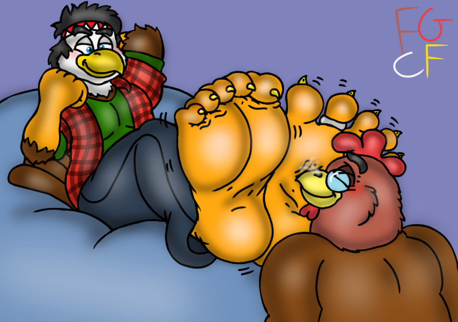 Featuring his Eagle Dude Harley getting his birb stompers sniffed By Michael the rooster heh