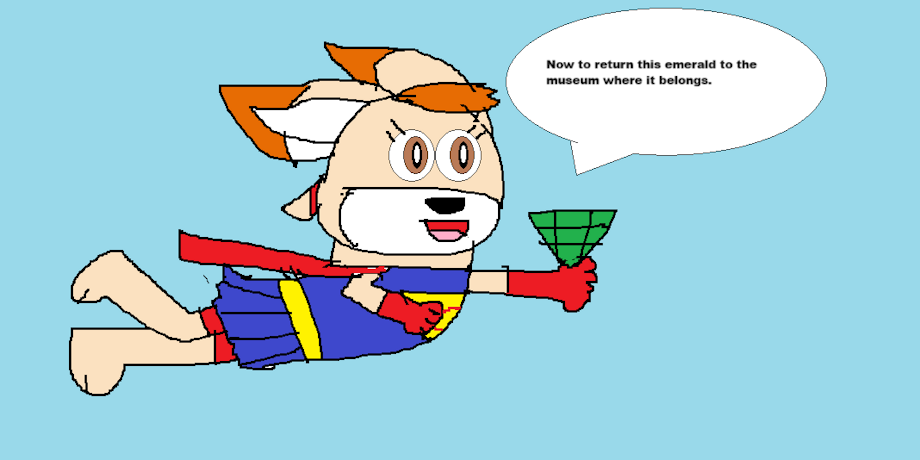After stopping some jewel thieves who stole a priceless emerald from the Emerald Town Museum, Supercream (as a preteen) flies to take it back where it belongs.