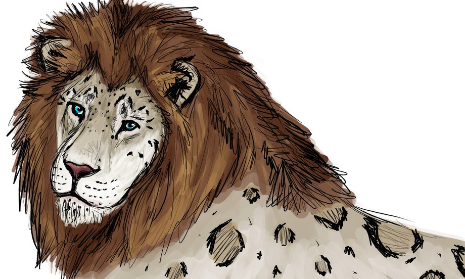 Just a quick recolour of the lion from my previous daily sketch. I've given him snowleopard markings and colouration, thus making him into an approximation of a snowliopard. Ideally a snowliopard would have a more snowleopard shaped face, but this I think this version looks pretty nice anyway.