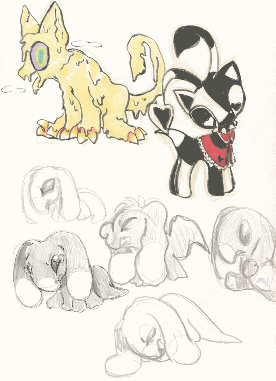 , as we were sketching our new baby pets that we made together. she kept our page lively by peppering little babaa around our guys...