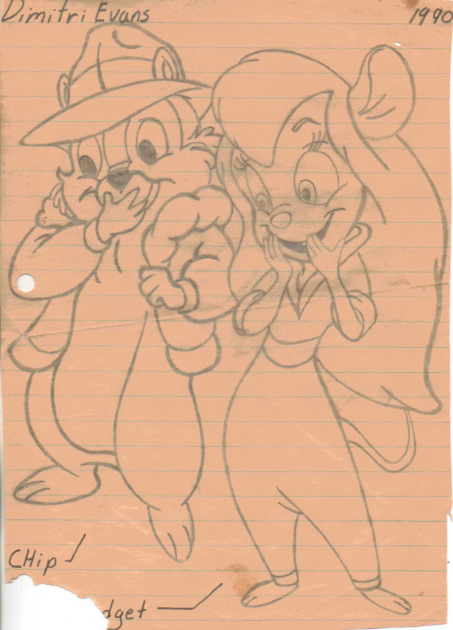 I found my old drawing Chip and Gadget from Rescue Rangers 34 years ago in 1990