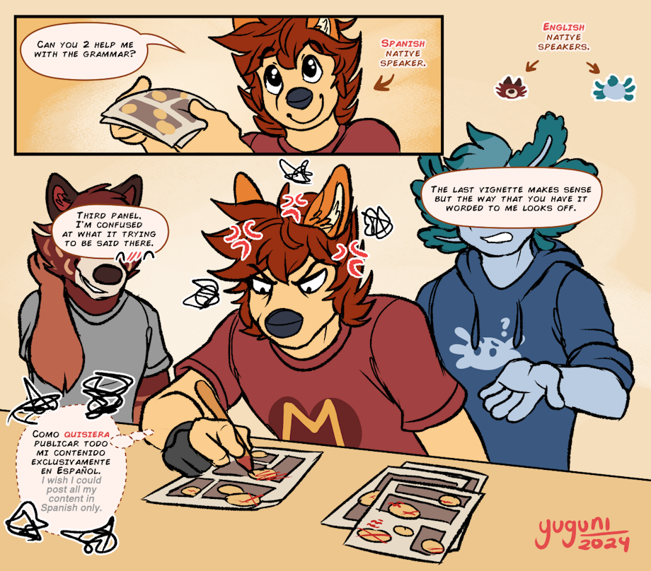 If you don't know, my first language is Spanish and many times I have asked myself "what if I publish my comics in Spanish only and let the world take care of the translation?" but then I remember that most of my patrons are English speakers, hmmmmm.