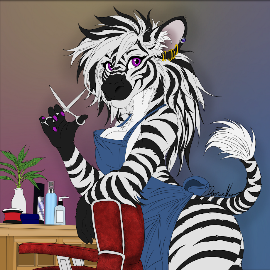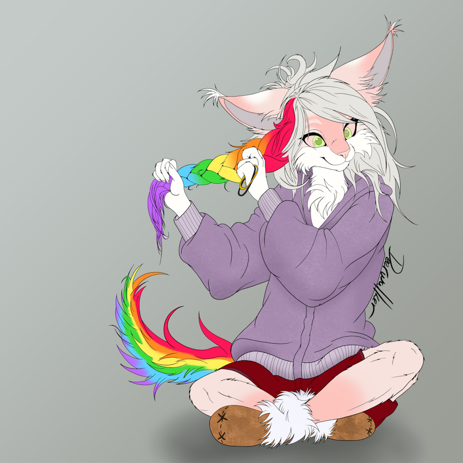 's lovely leucistic meezer, Vynera. I really enjoyed the challenge of this one, being colorblind, and dealing with a literal braided rainbow was actually really fun.
